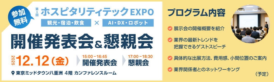 ホスピタリティテックEXPO 開催発表会のご案内です!