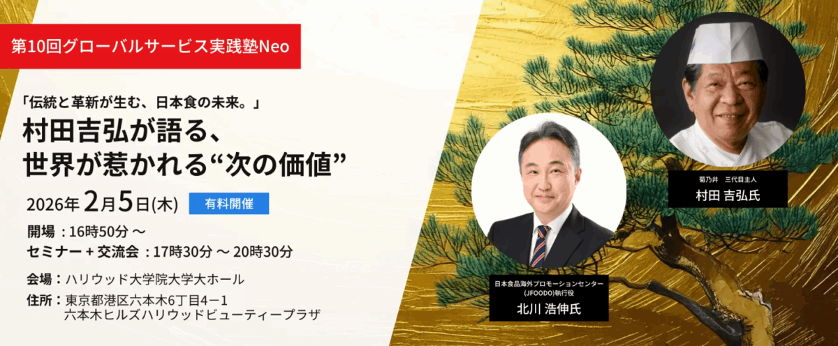日本料理の重鎮・村田吉弘氏が、世界が惹かれる“次の価値”を示します。