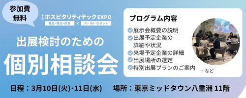 「宿泊・観光業界 関係者の皆さまへ」ホスピタリティテックEXPO 個別相談会のご案内です!